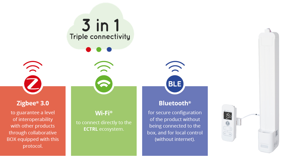 It provides full bi-directional connectivity, enabling control as well as data and consumption readings, and guarantees free upgradability thanks to remote software updates using OTA (Over The Air) technology.